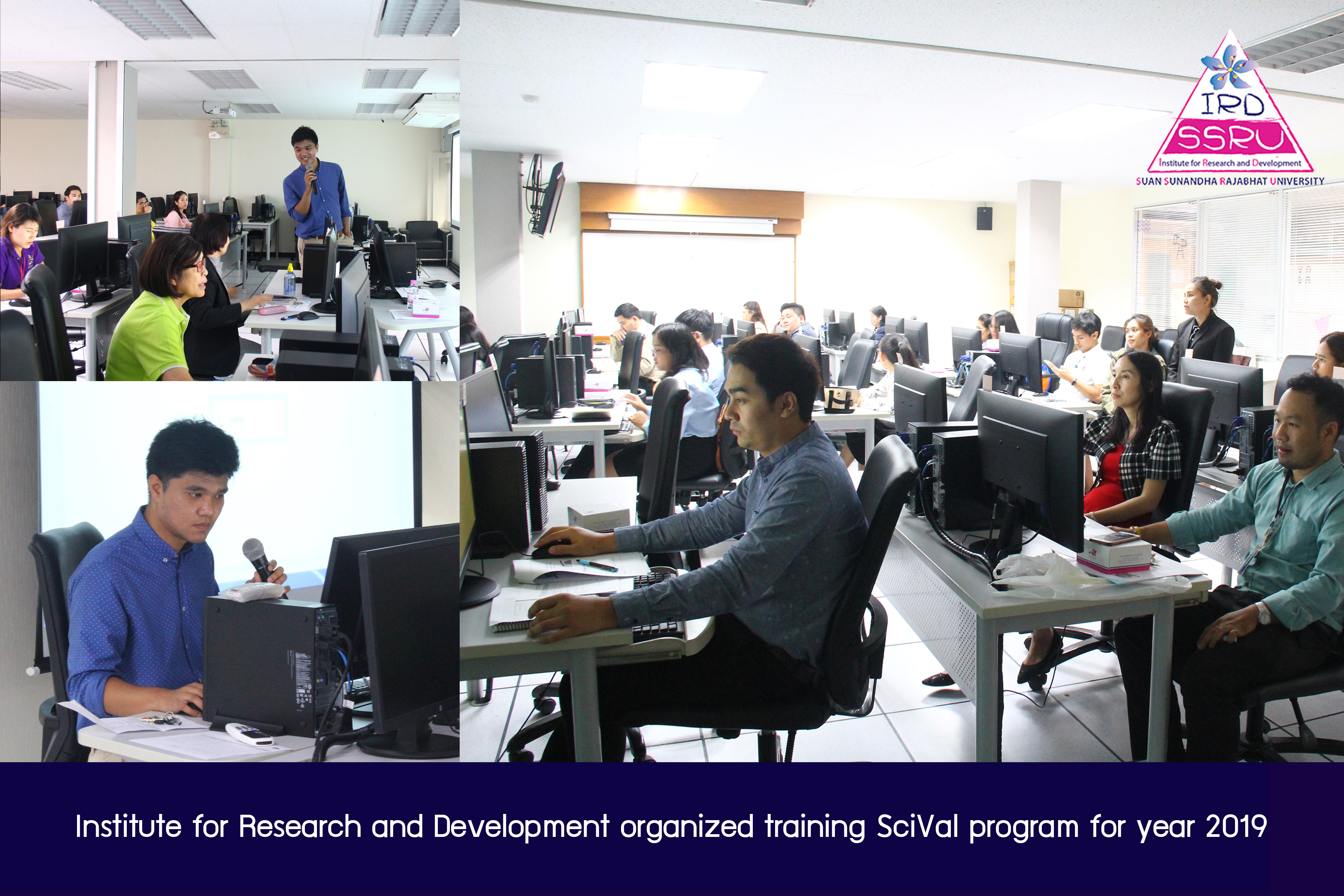 At 1:00-4:00 pm. Institute for Research and Development organized train SciVal program for year 2019 at Computer Laboratory room 2-3, building 31, 2nd floor, Suan Sunandha Rajabhat University was honored from Mr.Wanchak Noichan and Mr.Anuphan Sutthimarn as lecturer for train how to use SciVal program. There are many personnel of research department, academic services and who have involved from various faculties attended this training. The purpose of this training to provide participants with methods and techniques for using the SciVal program to measure, check and track research performance in each government section which research by using research data published in the Scopus database, analyze target and practical data. Including the participants will be informed of the benefits to using the SciVal program in order to properly estimate their research potential and can also be used to develop the research of University personnel that they can be more published in Scopus base.
