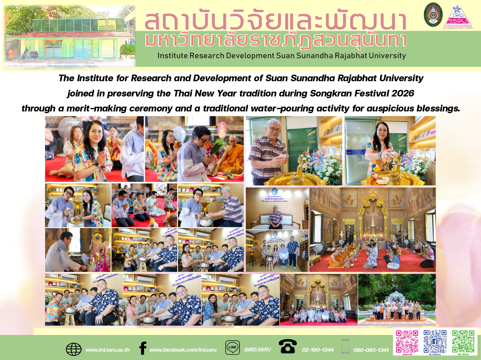 The Institute for Research and Development of Suan Sunandha Rajabhat University joined in preserving the Thai New Year tradition during Songkran Festival 2026 through a merit-making ceremony and a traditional water-pouring activity for auspicious blessings.