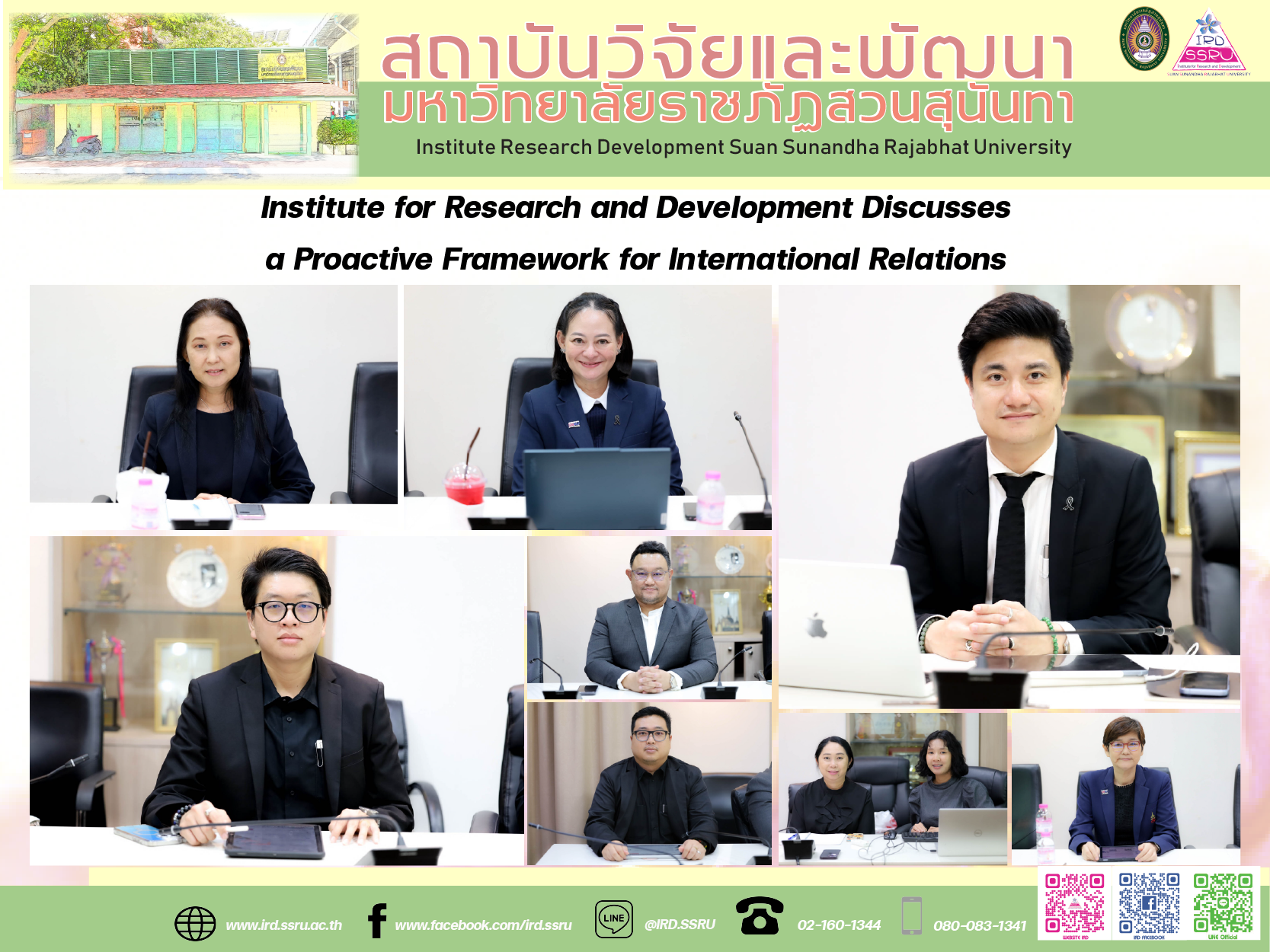 On 19 November 2025, the Institute for Research and Development (IRD), Suan Sunandha Rajabhat University, held a consultative meeting to chart a proactive framework and actionable plan for advancing the University’s international relations agenda. The session was led by Asst. Prof. Dr. Morakot Worachairungreung, Director of the Institute for Research and Development, with participation from Asst. Prof. Dr. Wat Ploysri, Vice-Director for Academic Services, and Asst. Prof. Nayot Kulpanich, Vice-Director for Research and Dissemination.