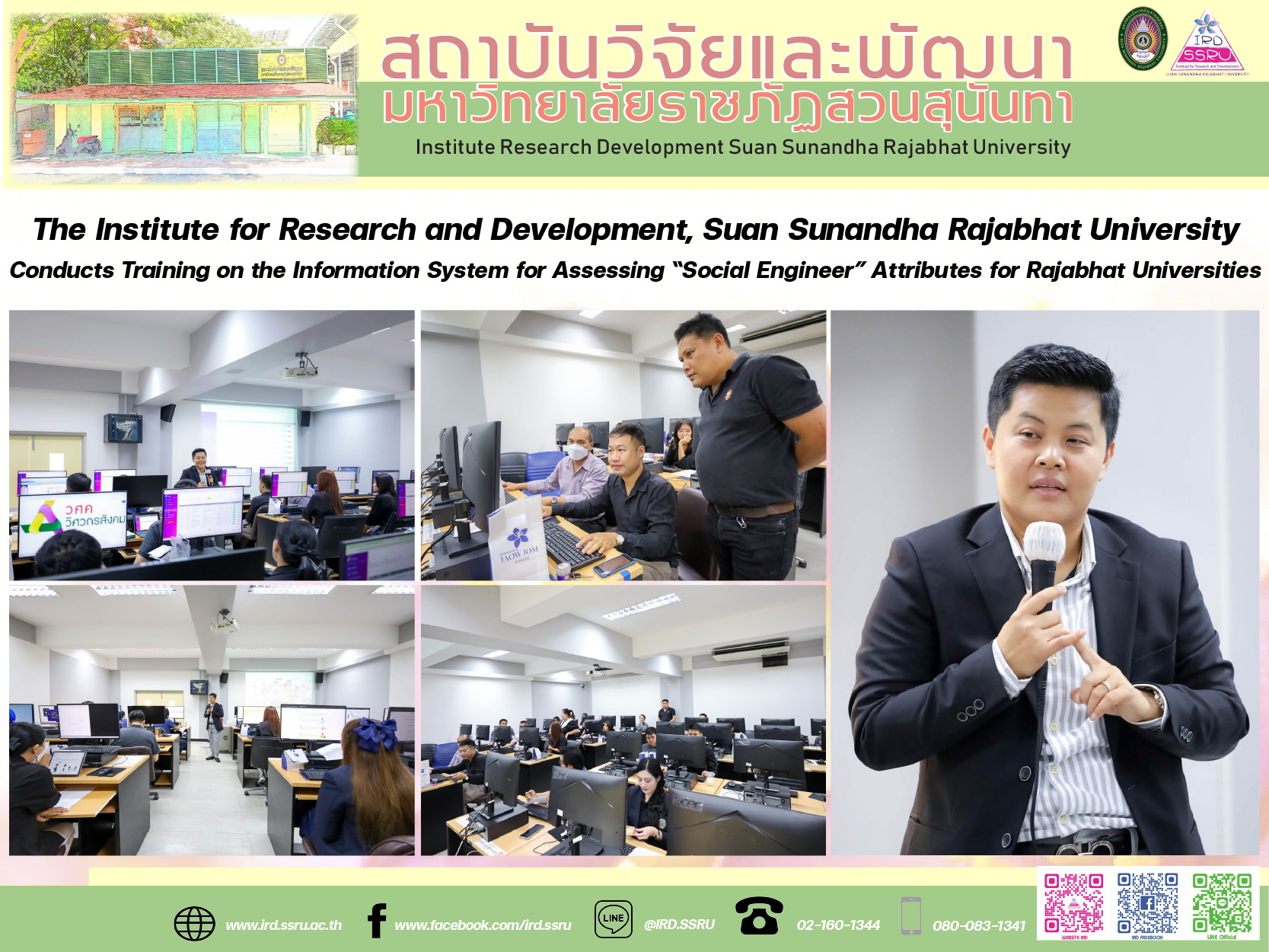 On 23 January 2026, the Institute for Research and Development, Suan Sunandha Rajabhat University, organized a training session on the Information System for Assessing Social Engineer Attributes for Rajabhat Universities for faculties, colleges, and internal units of the University. The training aimed to enhance knowledge, understanding, and practical system-usage skills among relevant faculty members and staff.