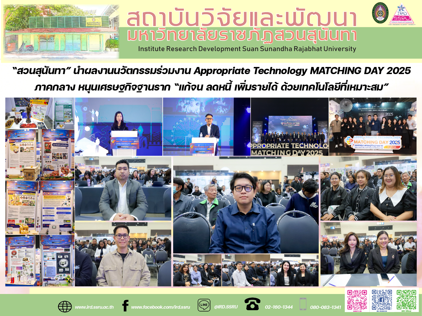 > “สวนสุนันทา” นำผลงานนวัตกรรมร่วมงาน Appropriate Technology MATCHING DAY 2025 ภาคกลาง หนุนเศรษฐกิจฐานราก “แก้จน ลดหนี้ เพิ่มรายได้ ด้วยเทคโนโลยีที่เหมาะสม”