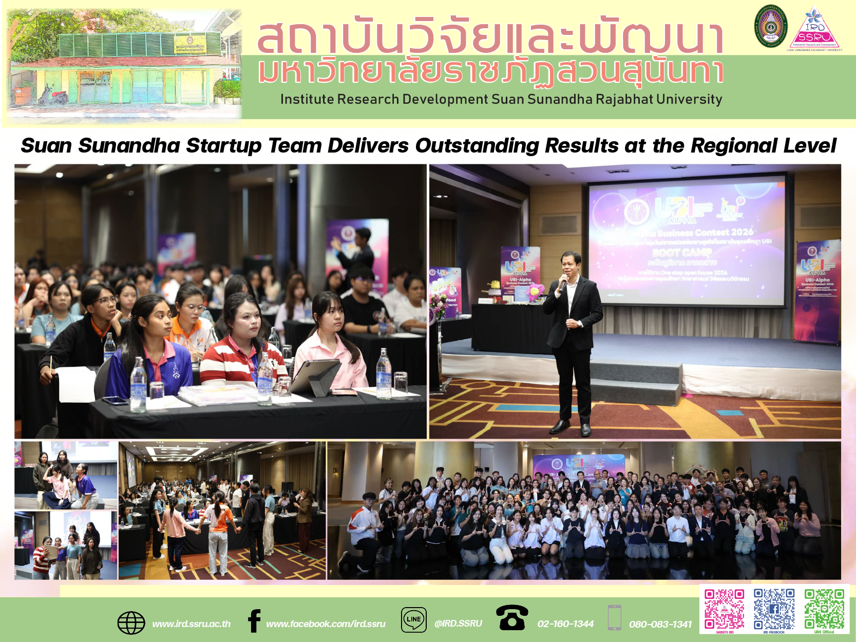 During 26–27 January 2026, the Institute for Research and Development led Suan Sunandha Rajabhat University’s student startup team, TIDY (TIDEE/“Thai Dee”) TEETH, an oral and dental care product made from pomelo peel extract, after the team was selected to advance to the competition round of the UBI-Alpha Contest 2026. The contest is a platform for developing new-generation entrepreneurs from university business incubator units (UBI), organized by the Office of the Permanent Secretary, Ministry of Higher Education, Science, Research and Innovation (OPS MHESI), with the aim of promoting and nurturing students to become emerging entrepreneurs at the regional level (Central and Eastern regions). The event was held at the Jubilee Prestige Ratchadapisek Hotel, Bangkok.
