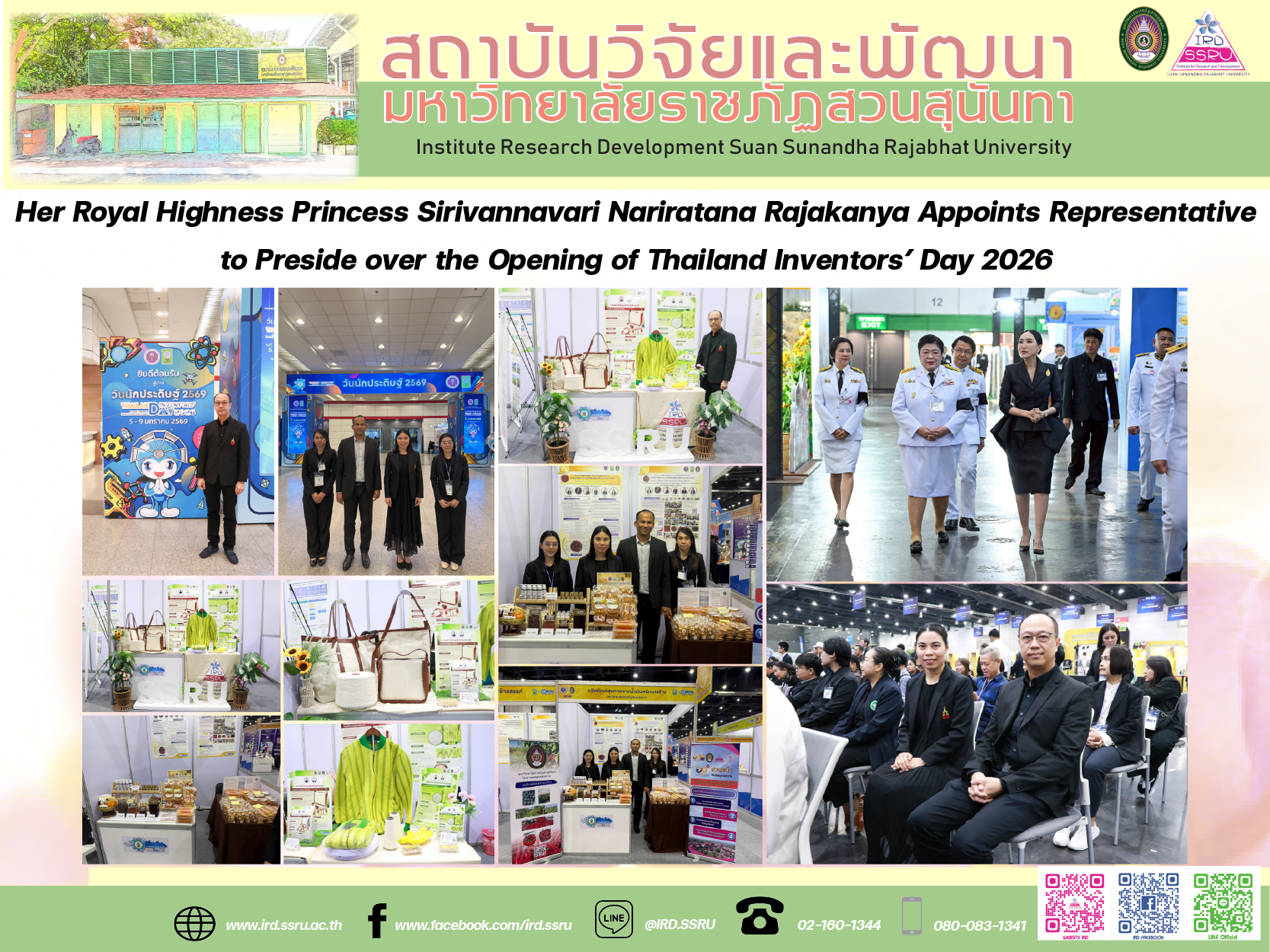 On 8 January 2026, Her Royal Highness Princess Sirivannavari Nariratana Rajakanya graciously appointed Ms. Ratirod Chulajata as her representative to preside over the opening ceremony of “Thailand Inventors’ Day 2026” (the 27th edition) and to present the National Research Awards for Fiscal Year 2026 to research teams across various fields. The ceremony took place at Event Hall 100–104, Bangkok International Trade & Exhibition Centre (BITEC), Bang Na, Bangkok, under the theme “Unlock Thailand – Power of Invention and Innovation.”