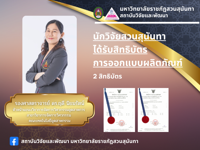 ผลงานวิจัยสร้างสรรค์ของนักวิจัยสวนสุนันทา ได้รับการจดสิทธิบัตรด้านการออกแบบผลิตภัณฑ์