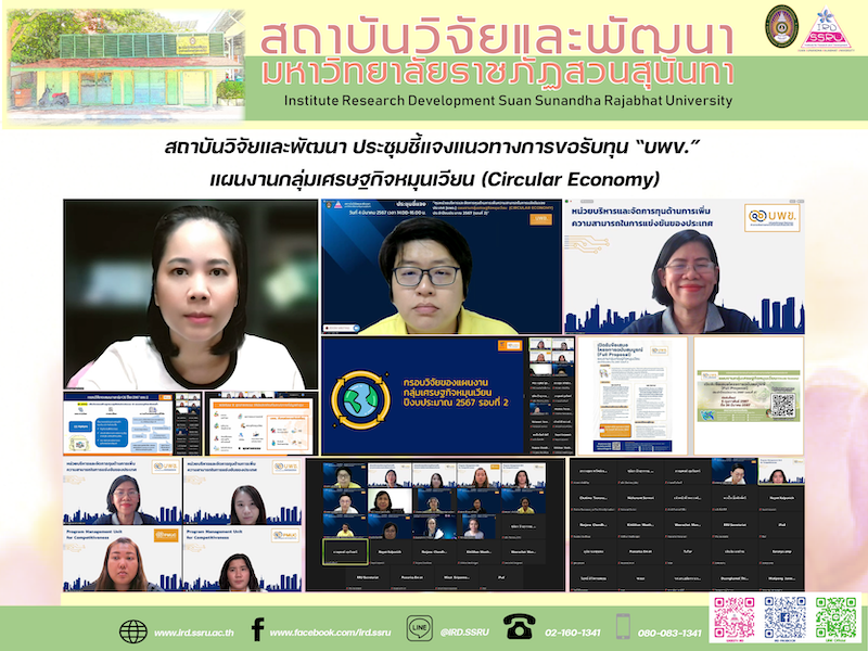 วันที่ 2 เมษายน 2567 สถาบันวิจัยและพัฒนา มหาวิทยาลัยราชภัฏสวนสุนันทา โดยรองศาสตราจารย์ ดร.รจนา จันทราสา ผู้อำนวยการสถาบันวิจัยและพัฒนา พร้อมด้วย ผู้ช่วยศาสตราจารย์ ดร.มรกต วรชัยรุ่งเรือง รองผู้อำนวยการฝ่ายวิจัยและเผยแพร่ และคณะทำงานสถาบันวิจัยและพัฒนา ประชุมชี้แจงโจทย์วิจัยและเป้าหมายสำคัญของทุนสถาบันวิจัยระบบสาธารณสุข (สวรส.) ประจำปีงบประมาณ 2568 ให้แก่คณาจารย์และนักวิจัยของมหาวิทยาลัยได้ทราบและเข้าใจในกรอบการวิจัย ตลอดจนแนวทางการเขียนแผนงานวิจัย ซึ่งได้รับเกียรติจาก ผู้ช่วยศาสตราจารย์ ดร.จรวยพร ศรีศศลักษณ์ รองผู้อำนวยการสถาบันวิจัยระบบสาธารณสุข (สวรส.) เป็นวิทยากรบรรยายให้ความรู้ ในรูปแบบการประชุมออนไลน์ผ่านระบบ Zoom Meeting