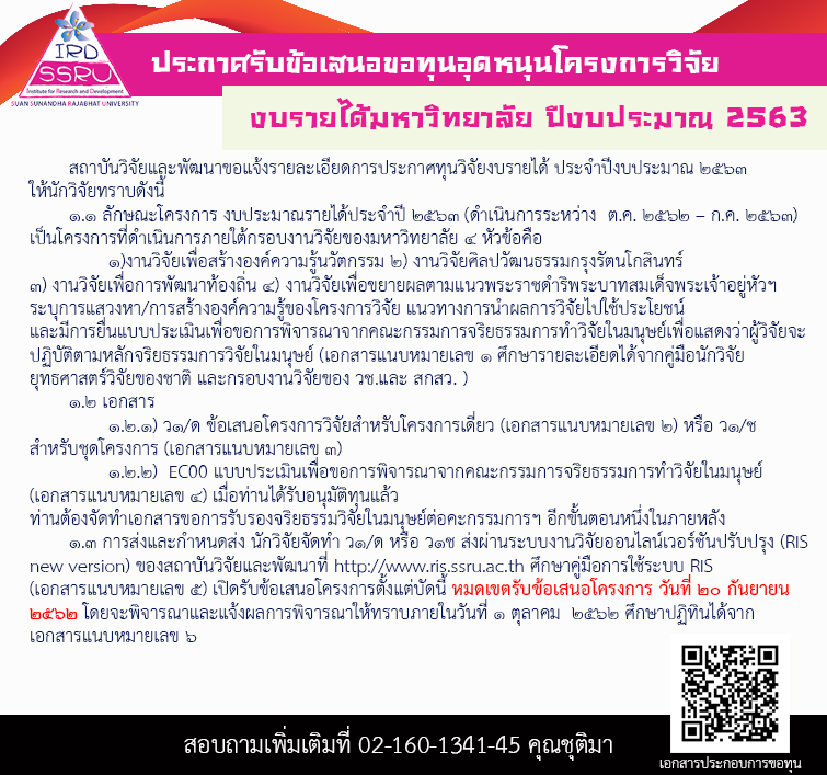 | 5. เอกสารแนบหมายเลข ๕ เอกสารแนบหมายเลข ๕ คู่มือการใช้ระบบ Ris เพื่อขอทุนรายได้ปี 2563 | Download |