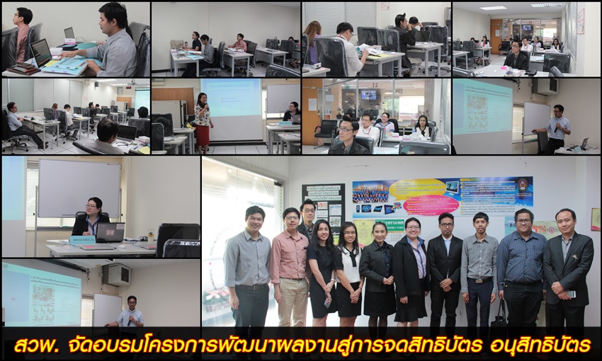 เมื่อวันพฤหัสบดี ที่ 8 มีนาคม 2561 สถาบันวิจัยและพัฒนา จัดอบรมโครงการพัฒนาผลงานสู่การจดสิทธิบัตร อนุสิทธิบัตร ณ ห้องปฏิบัติคอมพิวเตอร์ 1 ชั้น 2 อาคาร 31 โดยมี ผู้ช่วยศาสตราจารย์ ดร.สุวรีย์ ยอดฉิม ผู้อำนวยการสถาบันวิจัยและพัฒนา เป็นประธานเปิดงานอบรมโครงการดังกล่าว ซึ่งได้รับเกียรติจาก คุณดนัย เลี้ยงเจริญ และ คุณอารยา อิทธิประทีป ผู้เชี่ยวชาญด้านสิทธิบัตร กรมทรัพย์สินทางปัญญา โดยการอบรมดังกล่าวได้รับความร่วมมือจากคณะ/หน่วยงาน และผู้ที่สนใจเข้าร่วมอบรมโครงการพัฒนาผลงานสู่การจดสิทธิบัตร อนุสิทธิบัตร เป็นจำนวนมาก