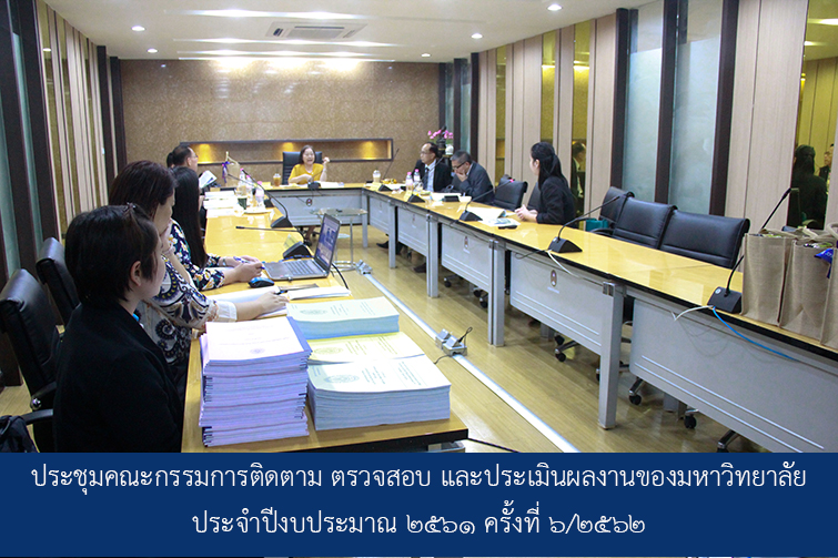ประชุมคณะกรรมการติดตาม ตรวจสอบ และประเมินผลงานของมหาวิทยาลัย ประจำปีงบประมาณ ๒๕๖๑ ครั้งที่ ๖/๒๕๖๒