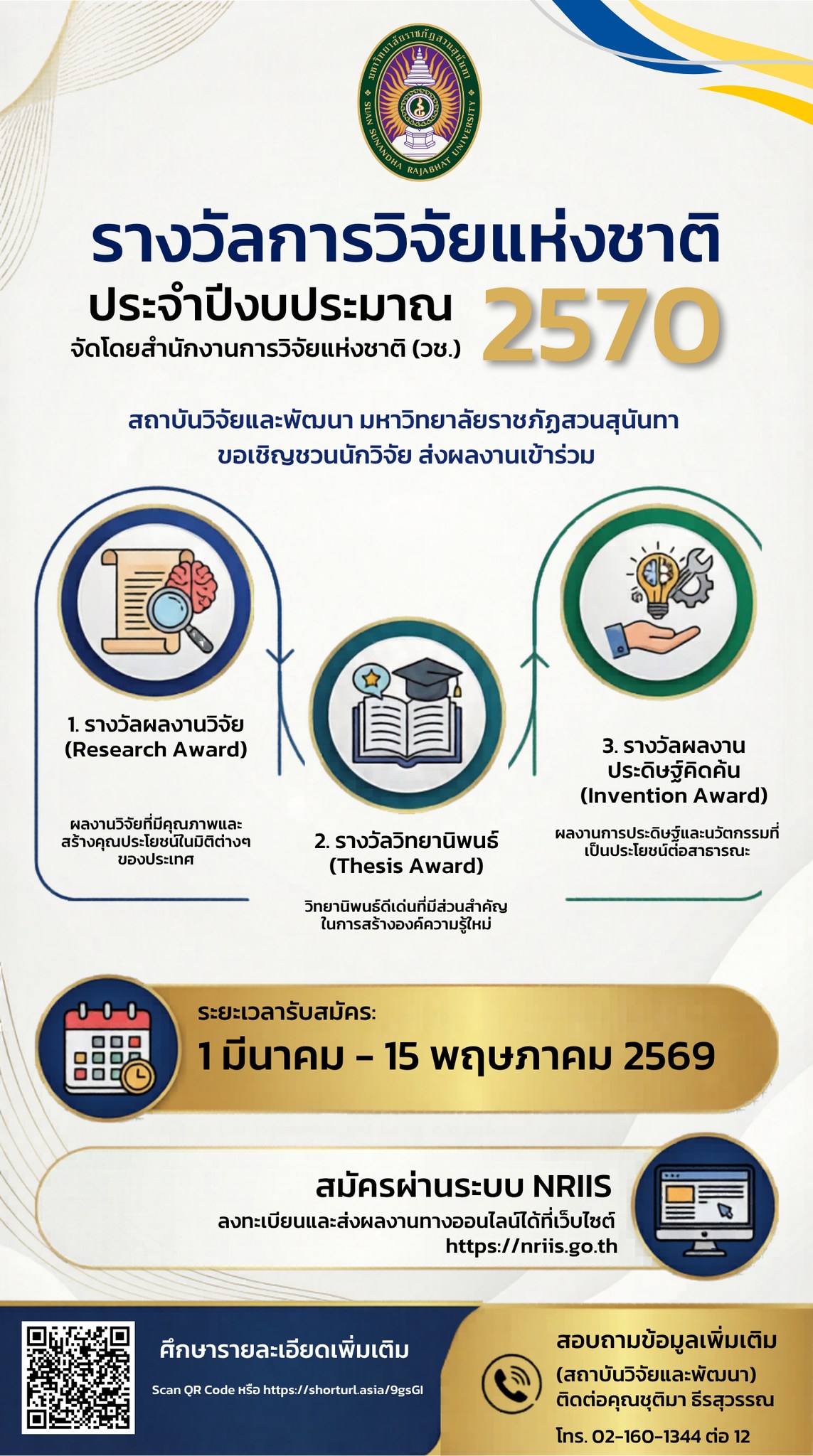 #รางวัลการวิจัยแห่งชาติ#NRIIS#SSRU#นักวิจัย#งานวิจัย#ResearchAward#Innovation#ThesisAward