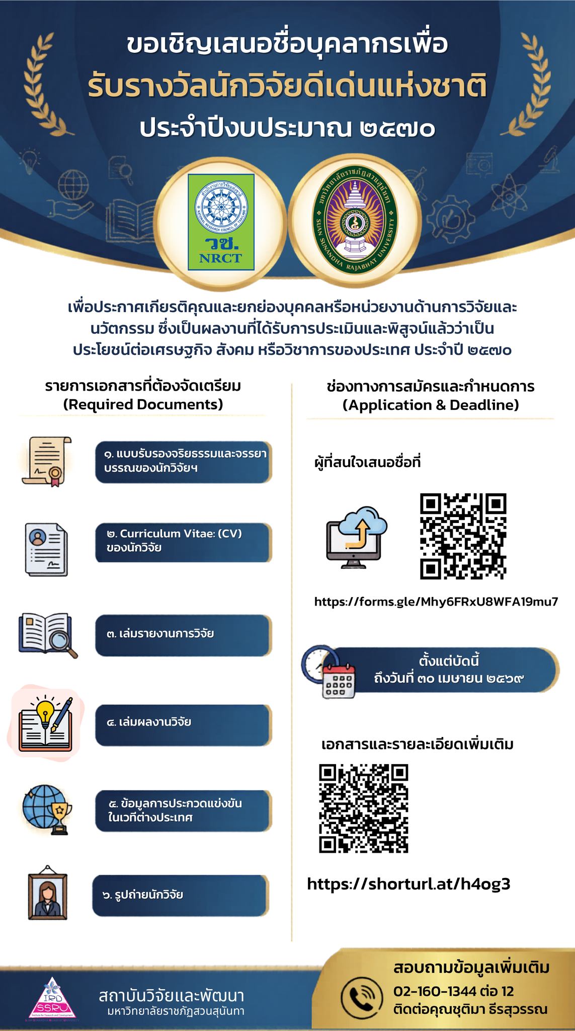 #นักวิจัย#รางวัลนักวิจัยดีเด่นแห่งชาติ#งานวิจัย#ResearchAward#SSRU#พัฒนางานวิจัย#วช