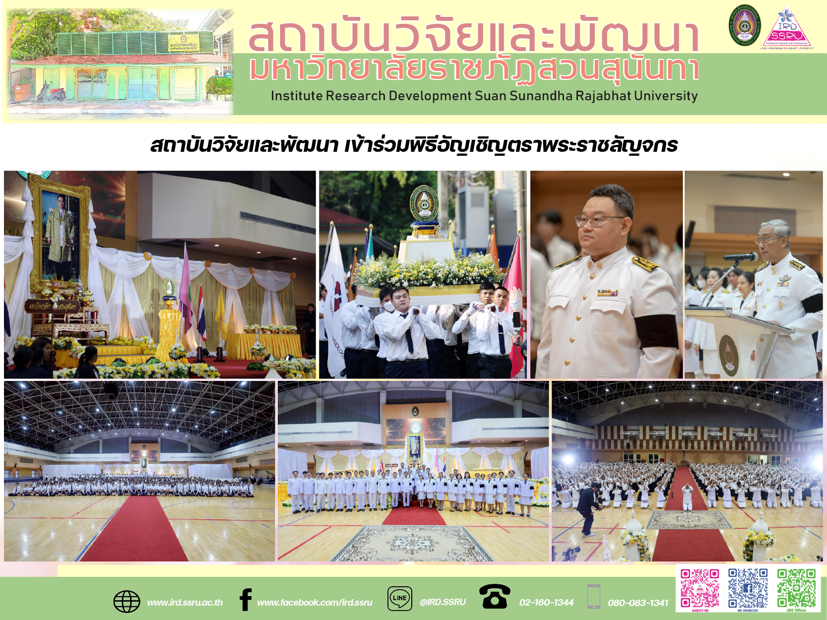 วันที่ 14 กุมภาพันธ์ 2569 สถาบันวิจัยและพัฒนา มหาวิทยาลัยราชภัฏสวนสุนันทา เข้าร่วมพิธีอัญเชิญตราพระราชลัญจกรในพระบาทสมเด็จพระบรมชนกาธิเบศร มหาภูมิพลอดุลยเดชมหาราช บรมนาถบพิตร ประจำปีการศึกษา 2568 โดยมี รองศาสตราจารย์ ดร.วิทยา เมฆขำ รองอธิการบดีฝ่ายแผนงานและประกันคุณภาพ (รักษาการอธิการบดี) เป็นประธานในพิธี ณ อาคารศูนย์สุขภาพและกีฬาสวนสุนันทา ชั้น 4 มหาวิทยาลัยราชภัฏสวนสุนันทา