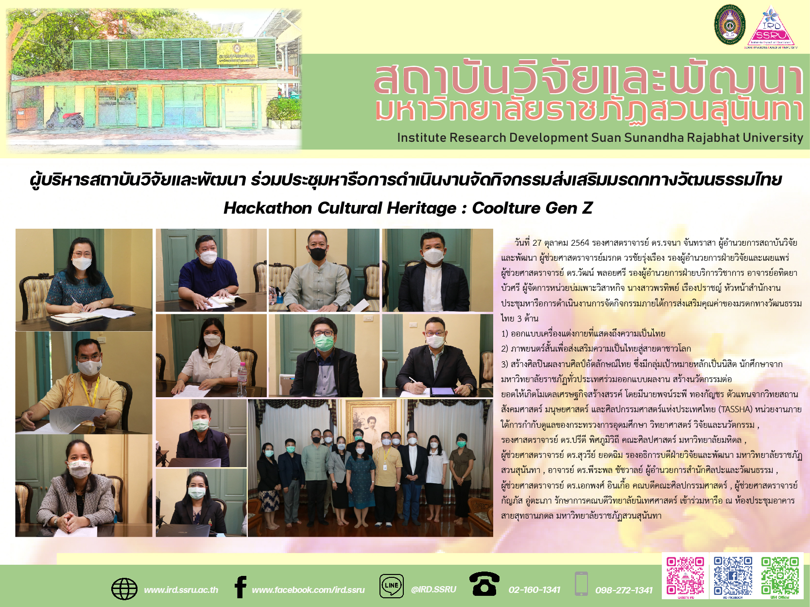 ผู้บริหารสถาบันวิจัยและพัฒนา ร่วมประชุมหารือการดำเนินงานจัดกิจกรรมส่งเสริมมรดกทางวัฒนธรรมไทย Hackathon Cultural Heritage : Coolture Gen Z