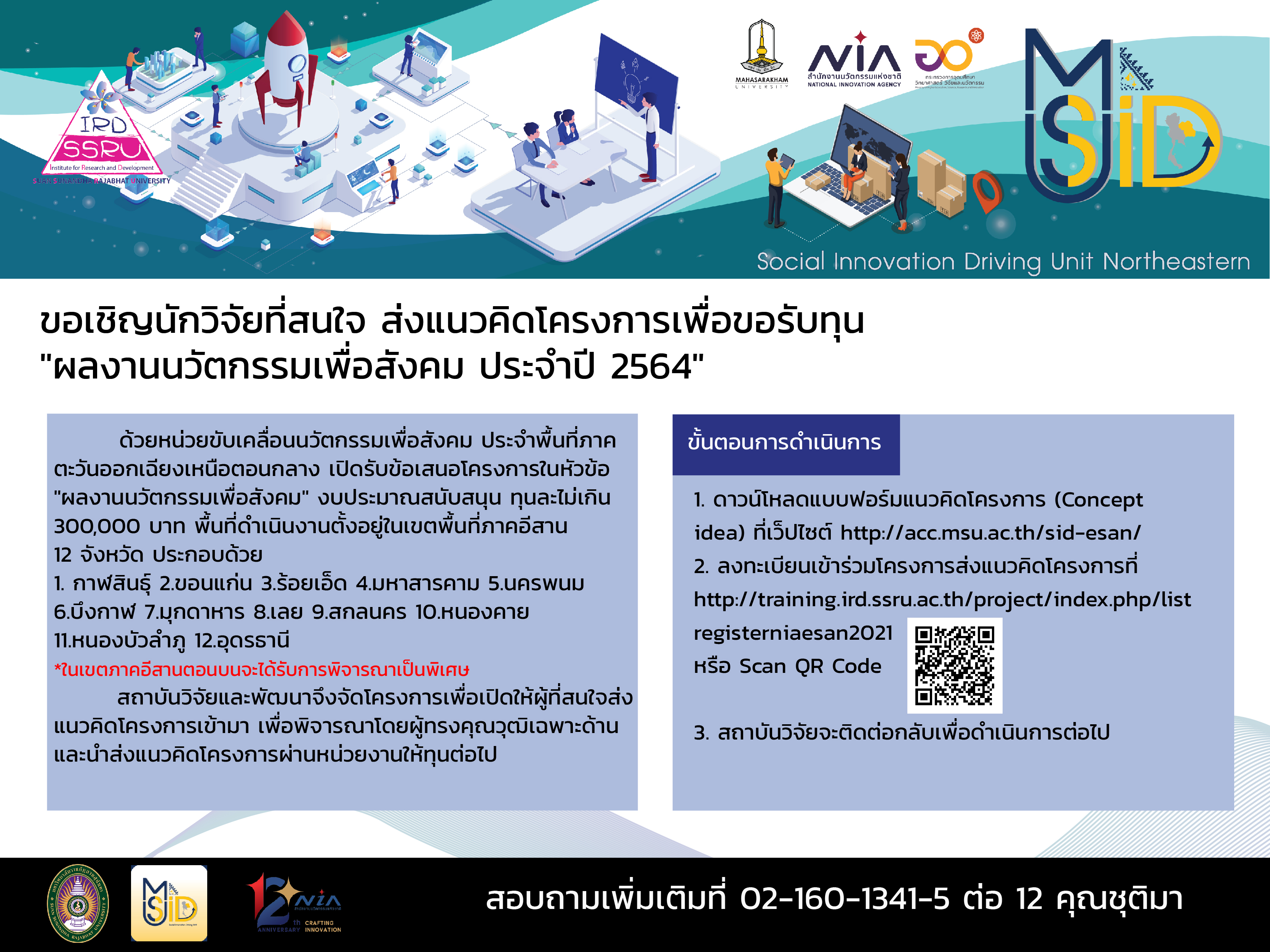 ดาวน์โหลดแบบฟอร์มแนวคิดโครงการ (Concept idea) ที่เว็ปไซต์ http://acc.msu.ac.th/sid-esan/